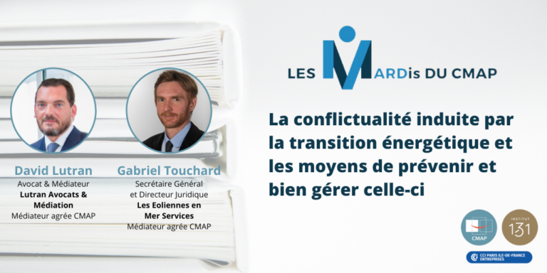 Mardi 2 juillet 2024 | 8h30 – 10h30En présentiel et à distance Chaque mois, le Centre de Médiation et d’Arbitrage de Paris – Institut 131 vous convie à un petit-déjeuner consacré aux Modes Alternatifs de Règlement des Différends. Le prochain aura lieu le Mardi 2 juillet. Retrouvez David Lutran, Avocat fondateur du cabinet Lutran ...