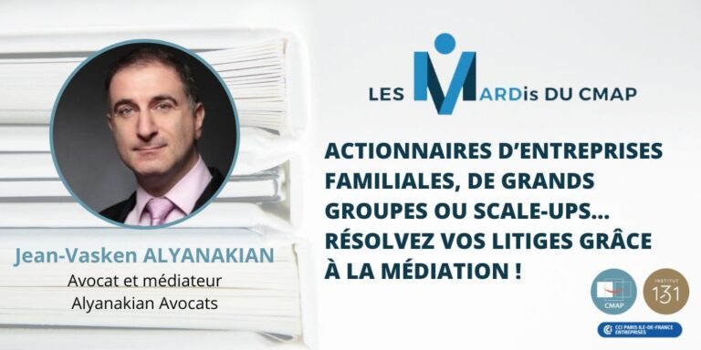 Mardi 4 mars 2025 | 8h30 – 10h30En présentiel et à distance Chaque mois, le Centre de Médiation et d’Arbitrage de Paris – Institut 131 vous convie à un petit-déjeuner consacré aux Modes Alternatifs de Règlement des Différends. Les actionnaires jouent un rôle clé dans la vie des entreprises. En cas de ...